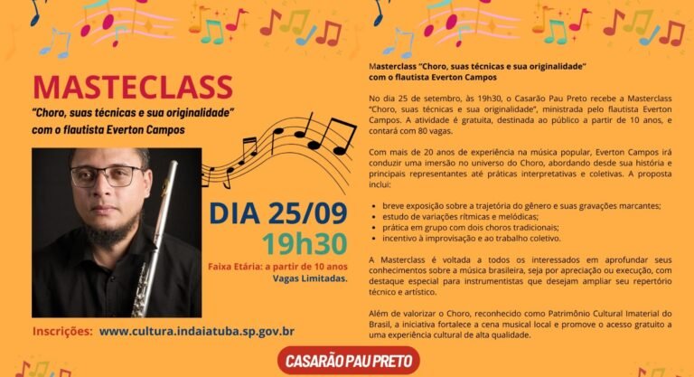 Casarão Cultural Pau Preto recebe Masterclass de Choro com o flautista Everton Campos 16 de setembro de 2025 Leia mais »