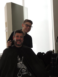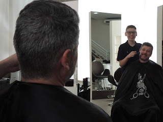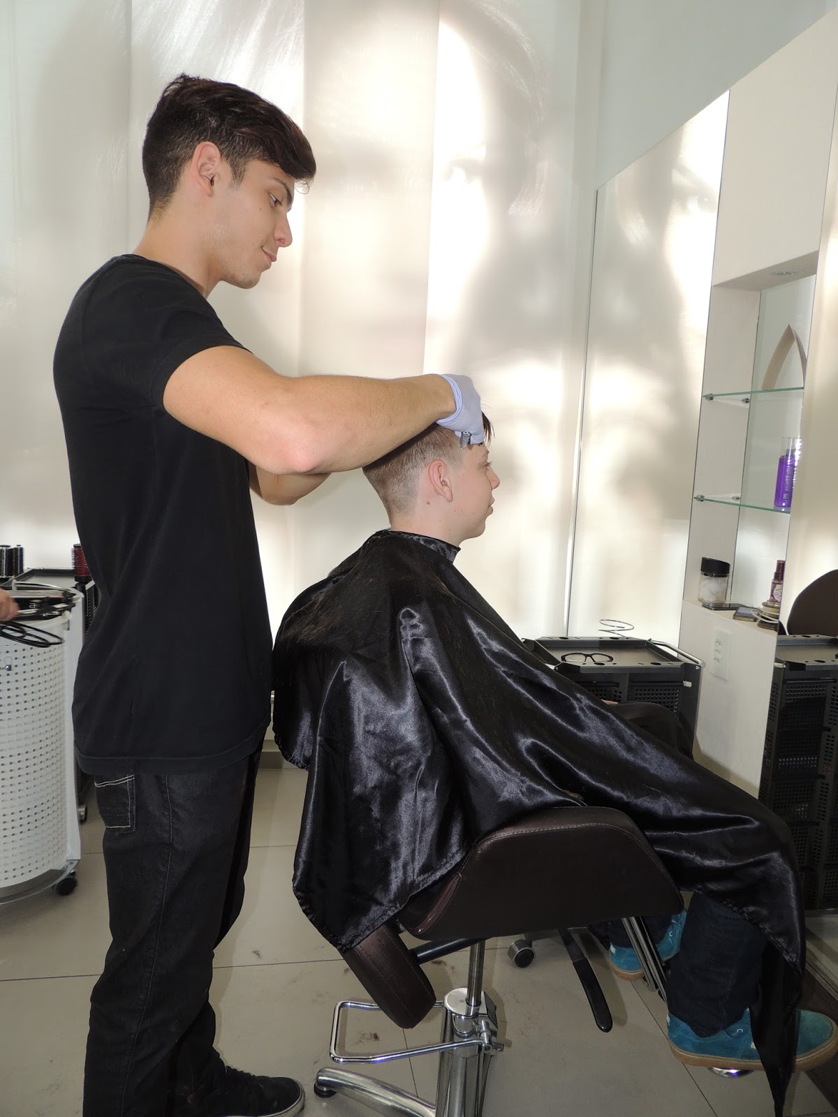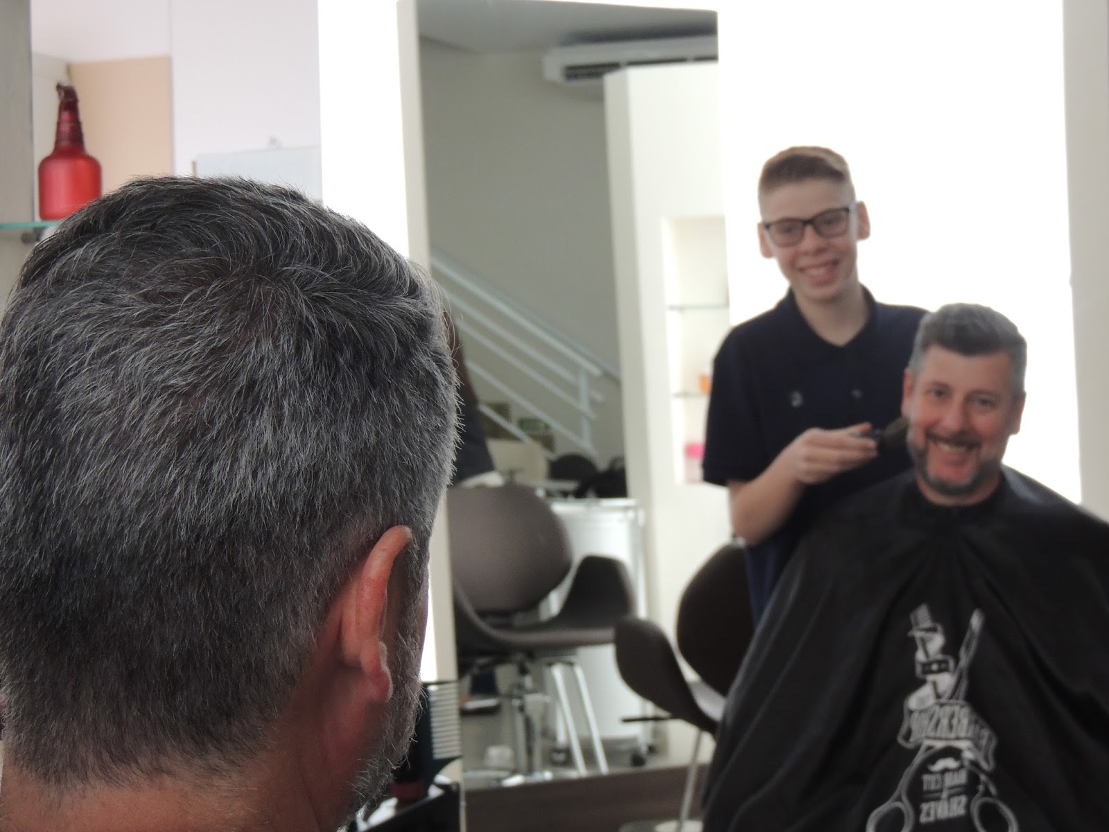 Luiz Fernando Feijó, Consultor Empresarial, com seu filho Luiz Fernando Scudeler Feijó cuidando do visual no Salão Gê Beleza, que atende a um público variado, com todos os tipos de cuidados para o corpo.