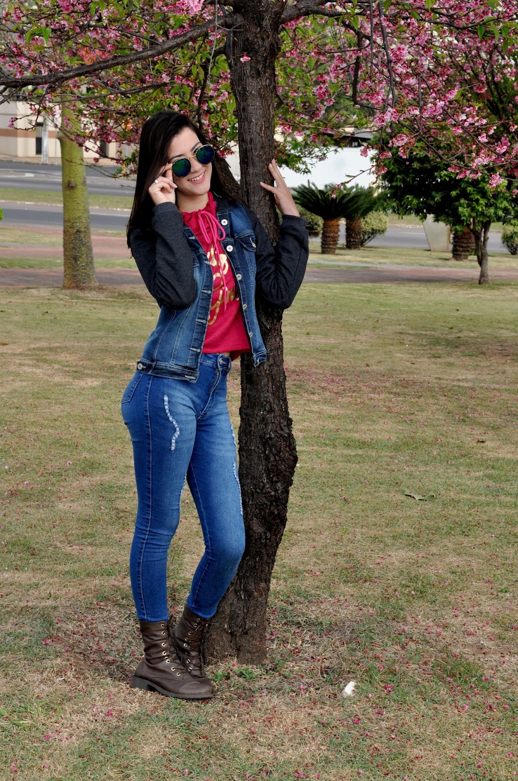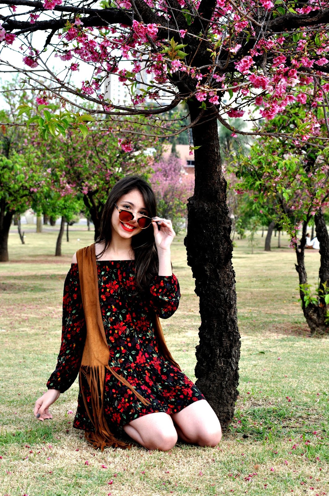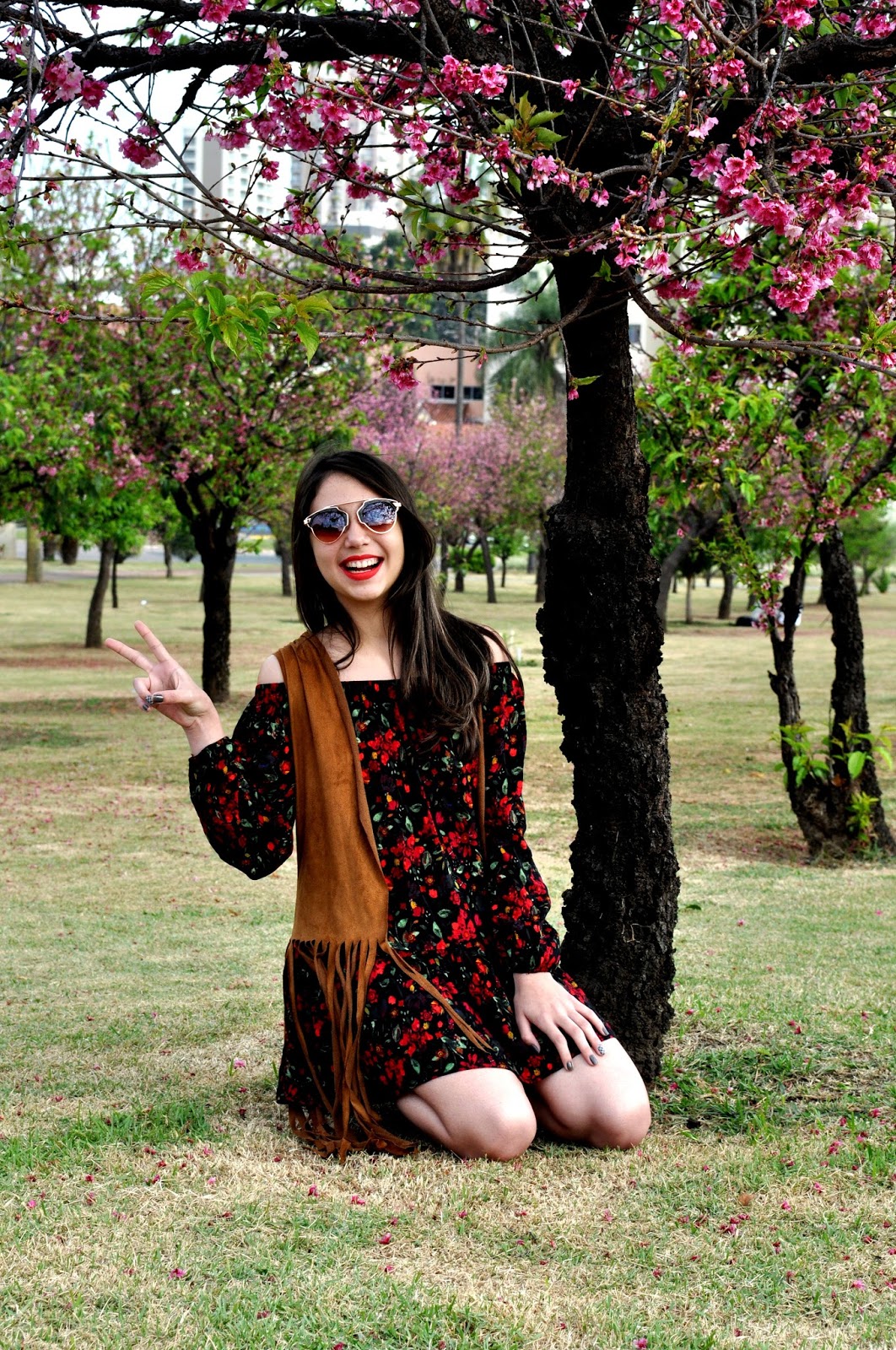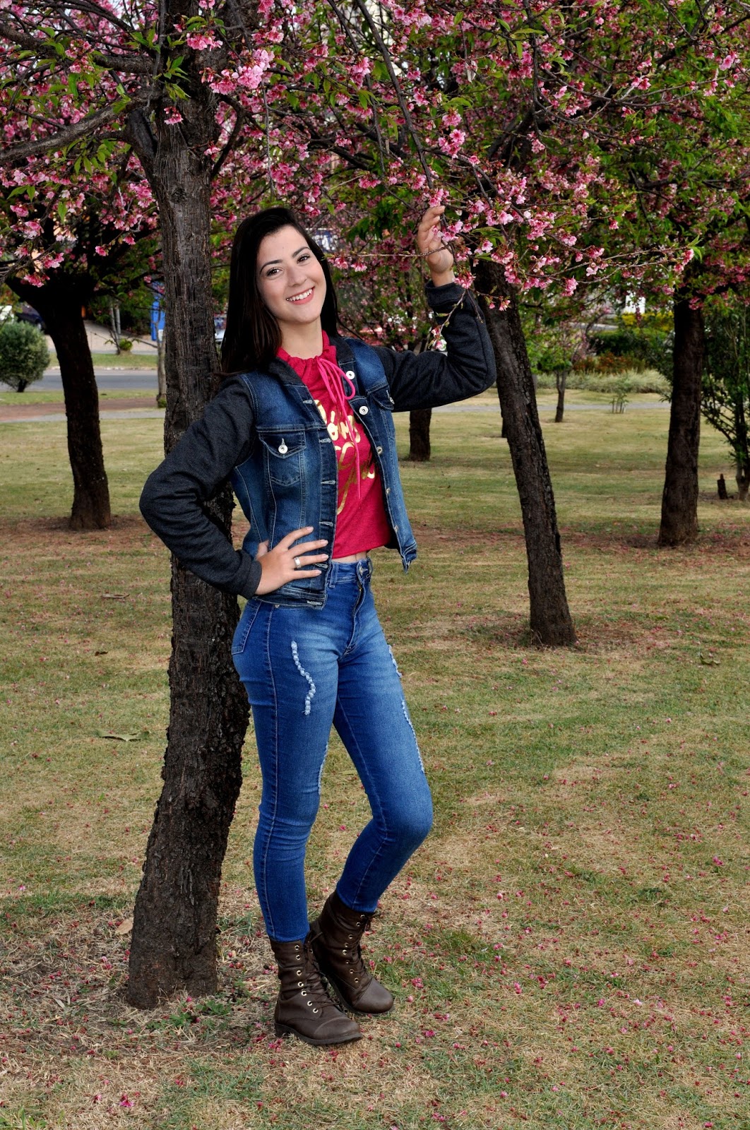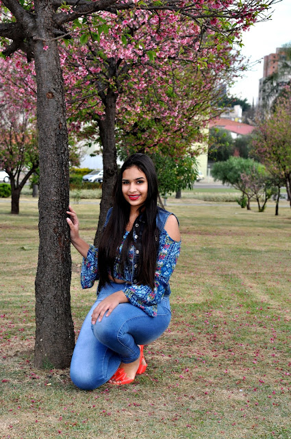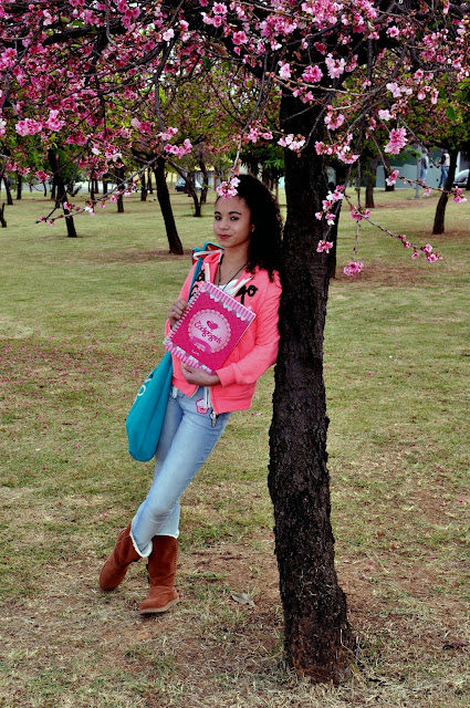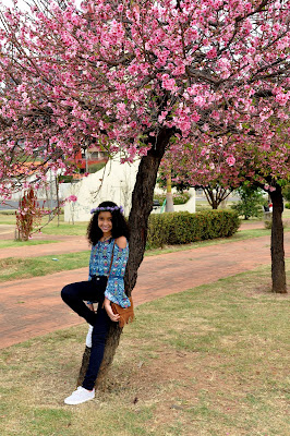 O local não poderia ser melhor, foi na Praça das cerejeiras que estava linda e colorida pela cor rosa.