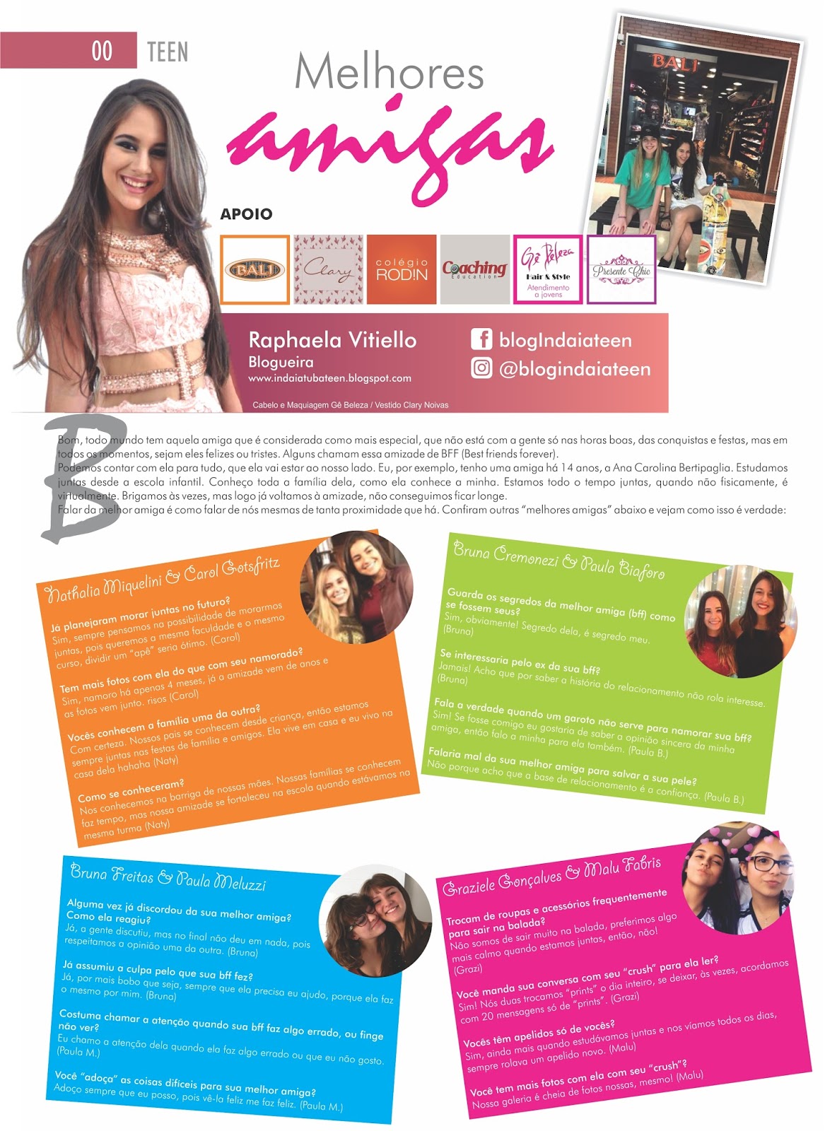 Confiram o ensaio que fiz com minha melhor amiga, Ana Carolina Bertipaglia  em alguns parceiros do Blog IndaiaTEEN: