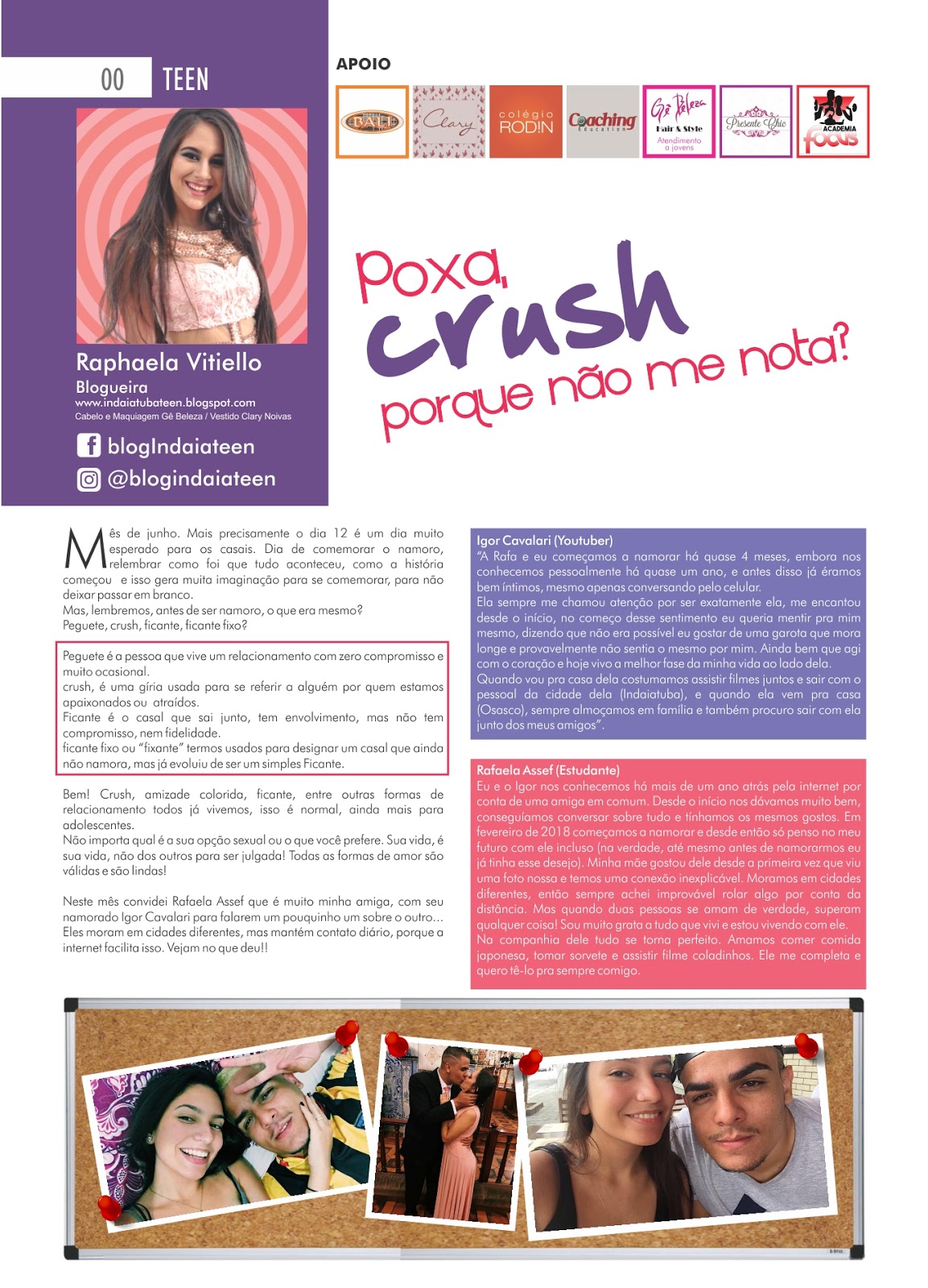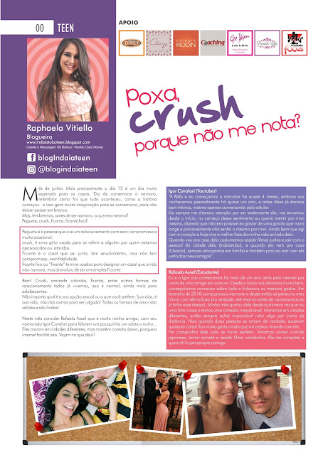 Na edição passada da Revista imediata conversei com o casal Rafaela Assef (estudante) e Igor Cavalari (youtuber) homenageando o casal de namorados.