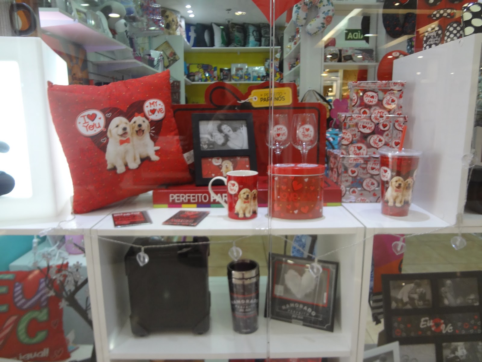 A vitrine da Speciale Presentes sugerindo presentes para o Dia dos namorados.