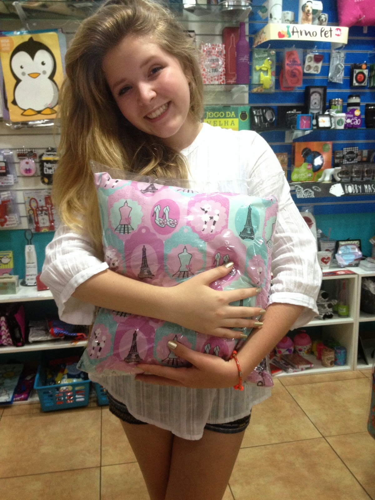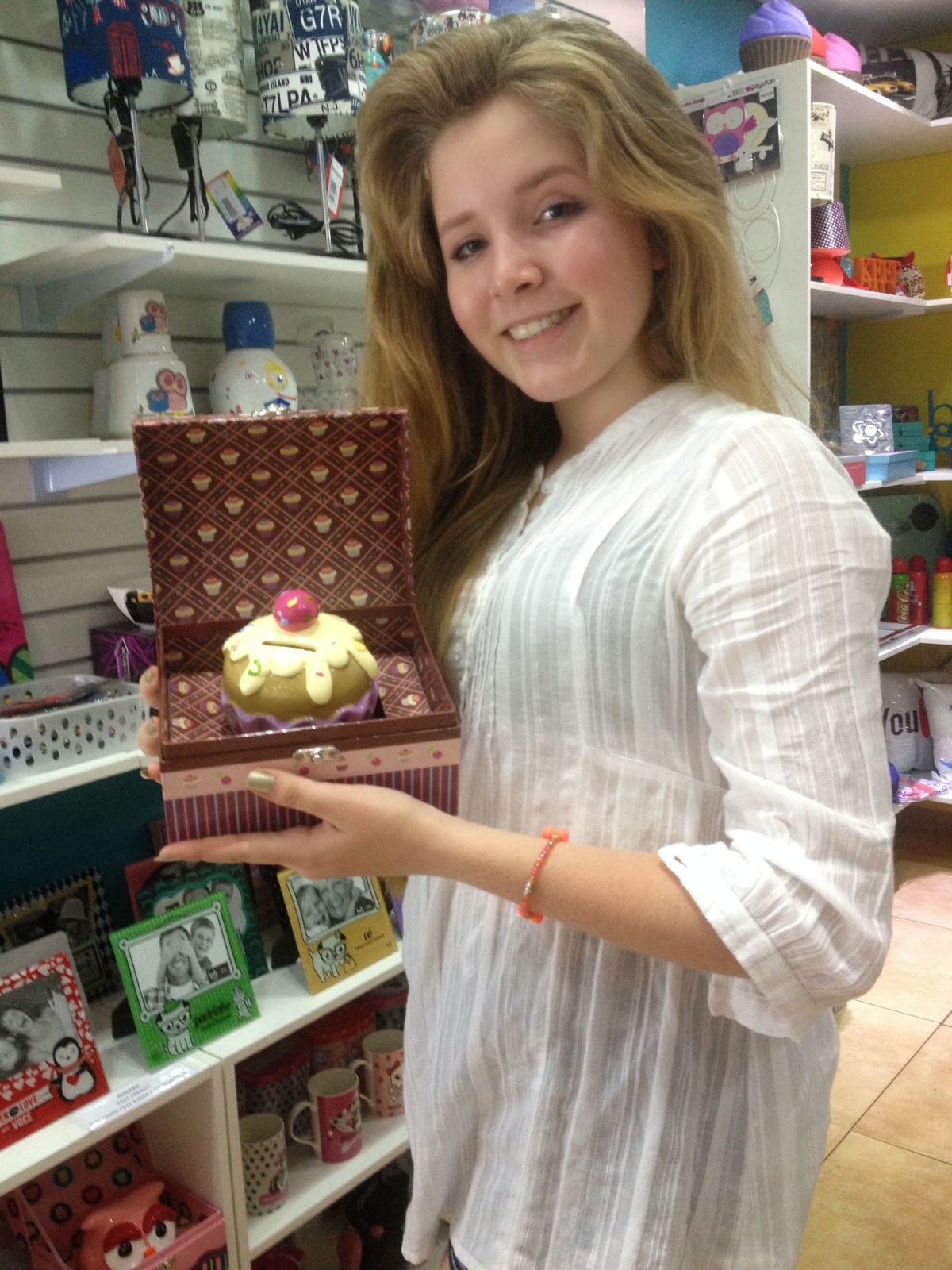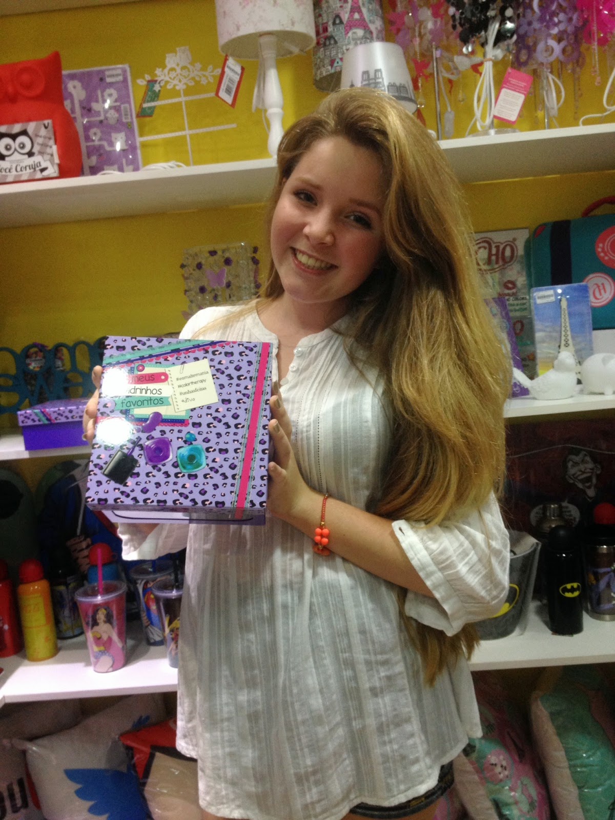 Gaby Valezin se encantou com os presentes da loja Speciale do Shopping Jaraguá.
