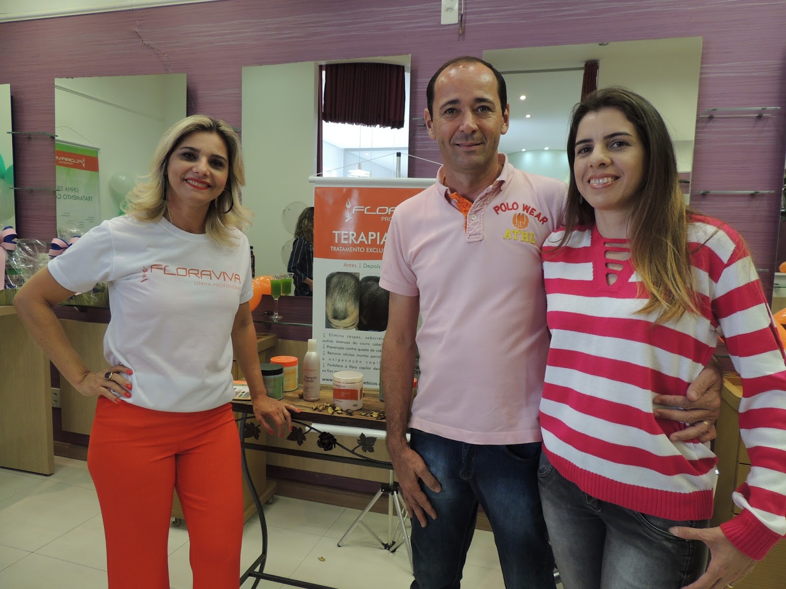 Aconteceu no Salão Gê Beleza a apresentação do tratamentoTerapia Capilar, que é indicado para quem tem problemas com quedas capilares. O tratamento é feito no salão, em sessões semanais com o produto Flora Viva, que faz parte do tratamento.